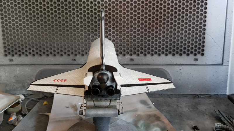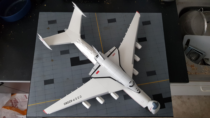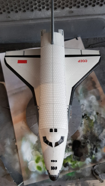 Der 24. Februar änderte dann irgendwie gefühlt alles, als ein schwanzgesichtiger Homunkulus (hier dann doch bitte nach eigenem Gefallen einen passenden Begriff für einen autokratisch und gewaltsam herrschenden Demokrator einsetzen, der offenbar unter geistiger Umnachtung leidet und gleichzeitig Kontrolle über mehrere tausend Atomsprengköpfen hat. Mir fällt da beim besten Willen nichts ein, was man halbwegs höflich nennen könnte) auf internationales Recht und Verträge schiss, und den Krieg zurück nach Europa brachte. Ab diesem Zeitpunkt fiel der Weiterbau wirklich schwer, insbesondere der „Buran“-Orbiter hatte diesbezüglich einen wirklich schweren Stand. Bereits wenige Tage später holte mich die Realität erneut ein, als eine barbarische Horde hirn- und zivilisationsloser Orks aus dem tiefsten Osten in einem blindwütigen Angriff die An-225 auf ihrer Basis in Kiew-Hostomel zerstört haben. Jetzt war das Maß eigentlich schon gestrichen voll! Wäre ich da nicht schon kurz vor dem Ende gewesen, hätte ich das ganze Projekt vermutlich abgebrochen und die An-225 solo gebaut. Insbesonder ihr altes weißes Kleid aus Sowjetzeiten zu lackieren, und dann noch die russischen Markierungen anzubringen, erzeugte beinahe körperliche Übelkeit. Das einzige, was mich immer wieder motivierte weiterzumachen, waren die Worte des ukranischen Außenministers Dmytro Kuleba, der auf Twitter schrieb: